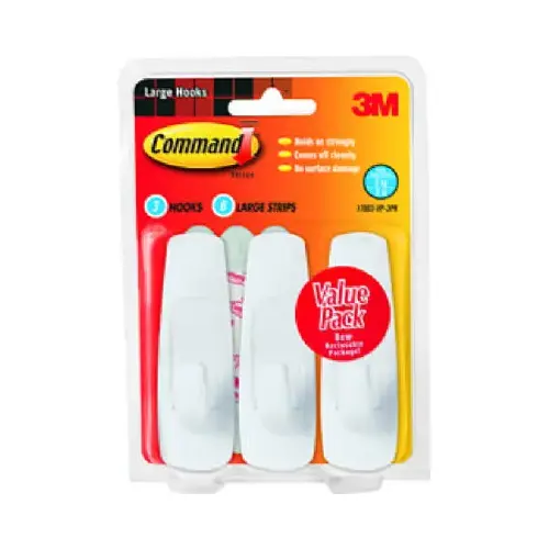 Command hooks are available in a wide range of designs to match your individual style and decor. They also come in a variety of sizes and hold a surprising amount of weight up to seven and a half pounds, forget about nails, screws and tacks, Command hooks are fast and easy to hang. Using the revolutionary Command adhesive, holds strongly on a variety of surfaces, including paint, wood, tile and more. Yet, removes cleanly, no holes, marks, sticky residue or stains. Rehanging them is as easy as applying a replacement Mounting strip, so you can take down, move and reuse them again and again.