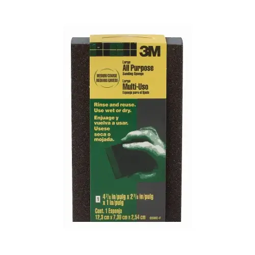3M Large area sanding sponge is ideal for either dry or wet sanding of wood, paint, metal, plastic and drywall. When finished simply rinse and reuse. Two grades on one sponge, medium/coarse.