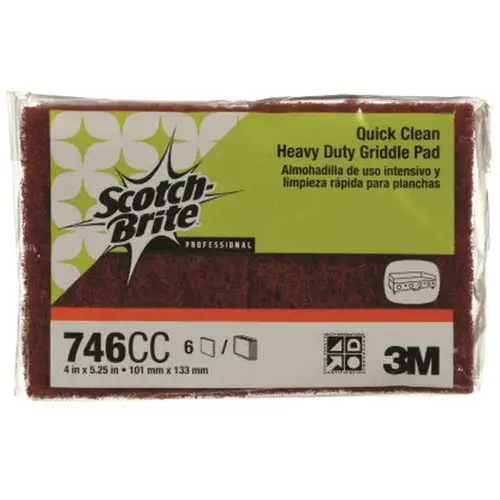 3M Quick Clean Heavy Duty Griddle Pad 746CC. Heavy Duty, Heat Resistant Scouring Pad Designed For Use With The Scotch Brite Quick Clean Griddle Cleaning System To Clean Flat Top Griddles. Cleans griddles faster than traditional griddle polishing pads. Thick, open construction allows easy rinsing, providing multiple uses. Leaves no residue. Certified by HACCP International as "Food Safe" and "Fit for Purpose". Mfg #746CC