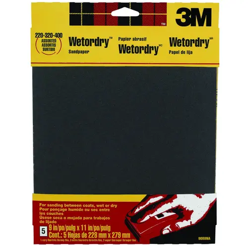 Sharp, synthetic, silicon carbide cuts fast to dry or wet sand between coats of varnish, paint and other finishes or to sand metal for repainting or prior primer coat. Use with water to reduce clogging and extend abrasive life.