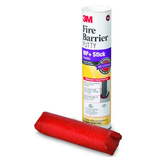 3M Fire Barrier Moldable Putty Stix MP+ is a one-part, re-enterable, intumescent putty that can be easily formed to firestop through penetrations and blank openings in fire-rated assemblies. We formulated this dark red, easily moldable putty stick to provide up to 4 hrs of fire protection. These putty stix also produce a draft and cold smoke seal and help reduce noise transfer.