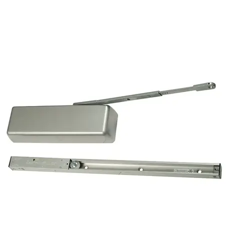 The 4040SE Sentronic is a heavy duty, non-handed, non-sized closer/holder designed to provide single point hold open for fire and smoke barrier doors. The door is held open until current interruption releases the holding mechanism and closes the door. The single lever track arm is designed for interior doors.