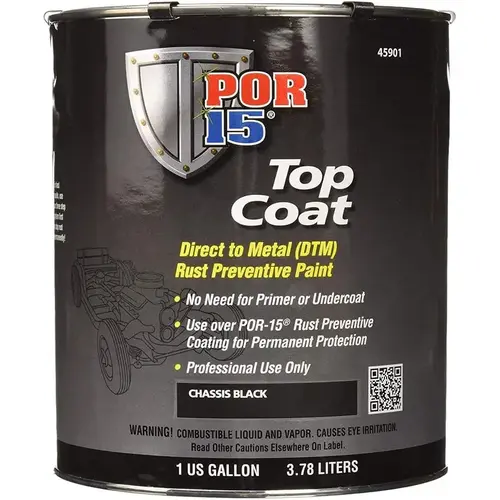 POR-15 45901 Top Coat DTM Paint, 1 gal Can, Chassis Black, Liquid, 30 to 60 min Curing