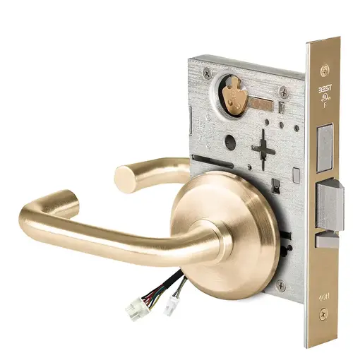 Fail Safe, 24V, With Deadbolt, No Key Override, Electrified Mortise Lock, 3 Lever, S Rose, Request to Exit, Satin Brass
