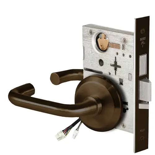 Fail Safe, 24V, With Deadbolt, No Key Override, Electrified Mortise Lock, 3 Lever, S Rose, Request to Exit, Oil Rubbed Bronze