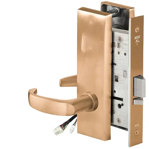 Fail Safe, 12V, No Key Override, Electrified Mortise Lock, 14 Lever, M Escutcheon, Satin Bronze