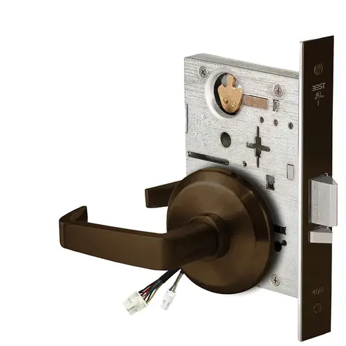 Fail Secure, 24V, No Key Override, Electrified Mortise Lock, 15 Lever, S Rose, Oil Rubbed Bronze