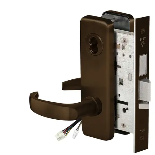 Fail Secure, 24V, With Deadbolt, Electrified Mortise Lock, 14 Lever, J Escutcheon, Request to Exit, Oil Rubbed Bronze