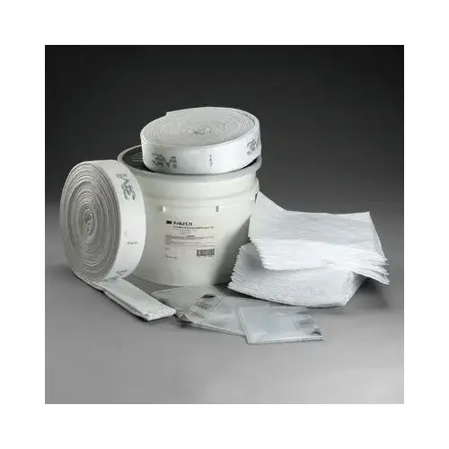 (2) P-FL550DD Rolls of Folded Sorbent, (30) HP-156 Chemical Sorbent Pad, (3) Temporary Disposal Bags and Ties, 20 gal White Drum with Lid and Plastic Closure Ring