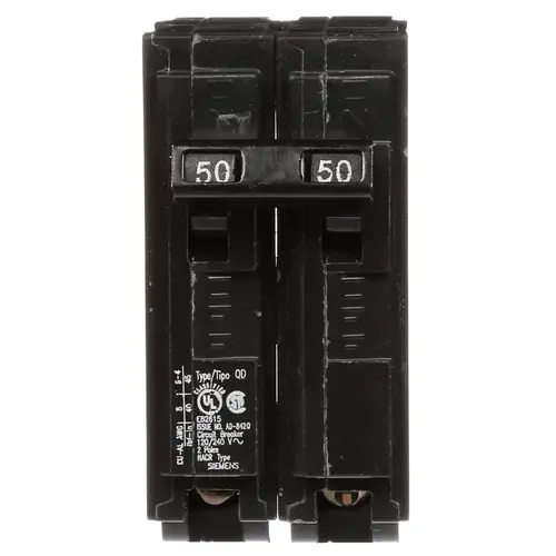 Siemens D250 50 Amp Double-Pole Type QD Replacement Circuit Breaker Black