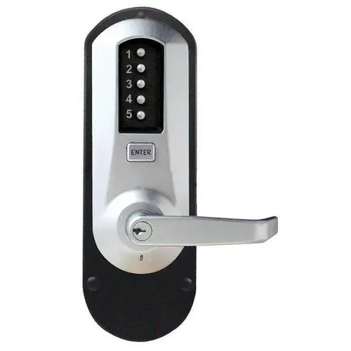 - Lock is easily programmed via keypad without removing the lockfrom the door