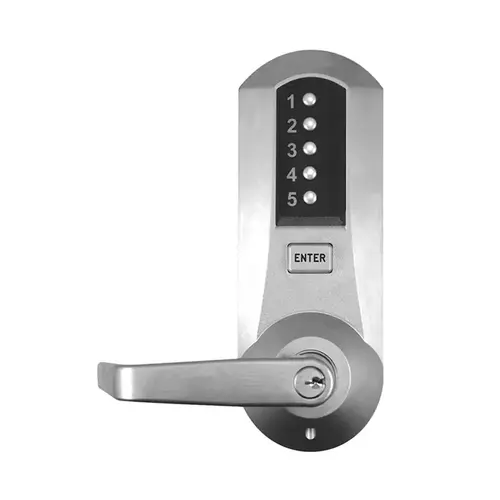 The Simplex 5000 Series provides exterior access by combination, while allowing free egress. This fully mechanical lock elimates the material and labor expense of battery replacements, has a single access-code and is programmed via the keypad without removing the lock from the door. The lock is available in a wide range of configurations. See the table below for the available options.