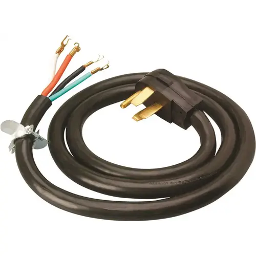 This 6 ft. 50 Amp 4-wire range cord with right angle plug which allows installation closer to the wall. The strain relief bracket ensures safe installation. This item is UL certified.