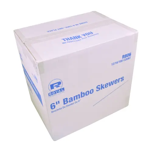 Royal 6 Inch Bamboo Skewer 100 per Pack - 16 per Box - 12 per Case