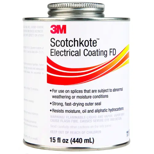 3M Scotchkote electrical coating FD is a fast-drying sealant that is designed to improve the weather resistance of taped splices. 3M Scotchkote electrical coating FD is designed to use with Scotch vinyl electrical tapes. It is ideal for use in applications that are subjected to excessive amounts of moisture and oil.