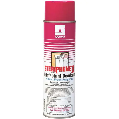 Steriphene II's dual Phenolic system provides effective antimicrobial activity on hard, nonporous, environmental surfaces. Ideal for convenient disinfection after spot clean-up for areas not easily reached during routine disinfection procedures. Steriphene II has been tested and shown effective against Methicillin-resistant Staphylococcus aureus (MRSA) and Vancomycin-resistant Enterococcus faecalis (VRE).