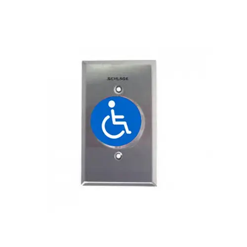 Schlage 623BLH 1-5/8" Mushroom Button, Single Gang, Blue Handicapped Symbol Satin Stainless Steel