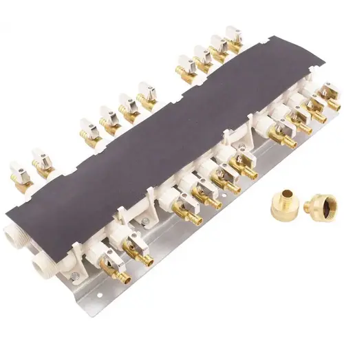 The ApolloPEX 20-Port PEX Manifold with 1/2 in. Brass Ball Valves is simple to install. Think of it as the circuit breaker for your water delivery system. The installation of an ApolloPEX manifold provides a single point flow control over each outlet. ApolloPEX manifolds are designed for implementation within home-run type PEX piping systems eliminating the need for additional fittings or connections between the water source and the point of use fixture. ApolloPEX manifolds are a key component of the most economical potable water piping systems. Also capable of integration into hydronic heating systems, ApolloPEX manifolds can be secured into place using copper crimps, stainless steel pinch clamps or stainless steel crimp sleeves (all sold separately). The ApolloPEX system is a comprehensive piping system comprised of brass fittings, poly alloy fittings, manifolds, valves, fasteners, tools and tubing designed for implementation in water delivery systems, simple or complex.