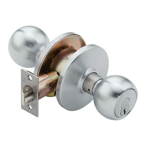 Entry (Entrance/Office) Function, Turn/Push Button Locking, SFIC Prep (6 or 7 pin), Less Core, 2-3/8 In. Backset, 2-3/4 In. T Strike, 4C Knob Trim, Satin Chrome