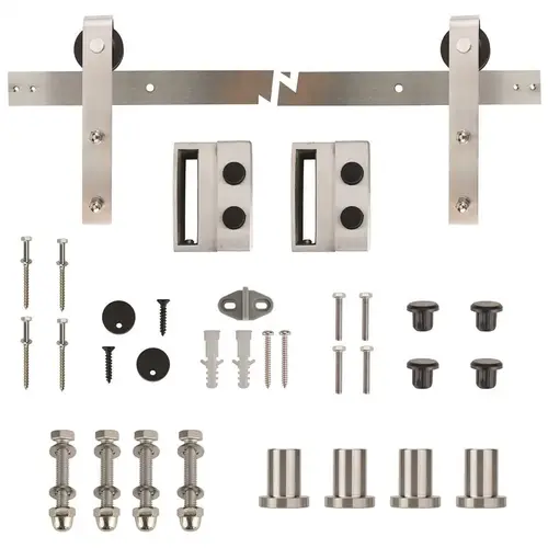 Adding an upscale look to your ordinary doorway, this Stainless-Steel Sliding Barn Door and Hardware Kit provides style and functionality. The perfect addition to offices and homes, this barn-styled door is ideal for closets, interior doors and room dividers. The high-density plastic wheels provide a smooth, sliding motion and quiet operation. Includes all needed mounting hardware and hanging components for one door.