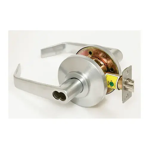 Entry (Entrance/Office) Function, Turn/Push Button Locking, SFIC Prep (6 or 7 pin), Less Core, 2-3/4 In. Backset, 2-3/4 In. T Strike, 15D Lever Trim, Satin Chrome