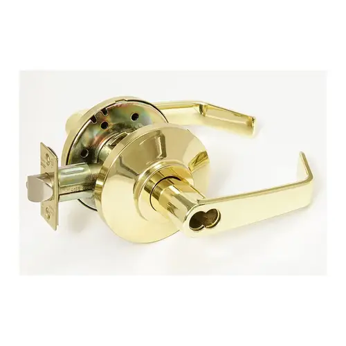 Entry (Entrance/Office) Function, Turn/Push Button Locking, SFIC Prep (6 or 7 pin), Less Core, 2-3/4 In. Backset, 4-7/8 In. ANSI Strike, 15D Lever Trim, Bright Brass