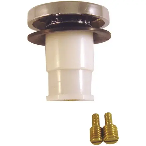 This Danco plastic tub stopper in chrome features a touch-toe design that pushes to open and close. The stopper includes a 3/8 in screw stud and a 5/16 in screw stud. It has a 2 in Dia to accommodate your drain and features a plastic construction that provides durability that will not rust.