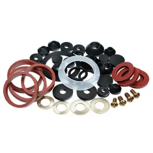 Includes: (2) 0 Beveled Washers (2) 3/8 in x 8-32 Round Head Screws (2) 3/8 in x 10-24 Slotted Screws (2) 8 O-Ring (2) 12 O-Ring (1) Round Hose Washer (2) Sink Strainer Washers (1) Type K Slip-Joint Washers (2) Type J Friction Washers (2) Type K Friction Washers (2) Tank Bolt Washers (2) 3/8 in Cone Washers (2) 1-1/2 in x 1-1/4 in Slip-Joint Washers (2) 1R Ballcock Washers (2) 7R Ballcock Washers (2) 00 Beveled Washers (2) 1/4 Flat Washers (2) 0 Flat Washers (2) 00 Flat Washers