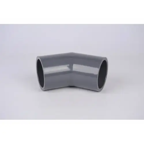 Dura 817-025 2.5" Gray Schedule 80 PVC Slip x Slip 45 Degree Elbow for use in connecting two pipes together to make an angle. Using PVC connectors allows for easy assembly and disassembly without the need for specialized tools. Dura Plastics PVC is made from high quality materials and is perfect for any pool or spa. This item is not recommended for use in compressed air or gas systems.