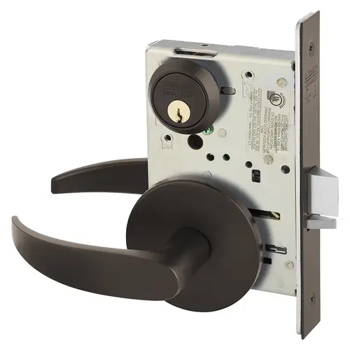 Grade 1 Storeroom or Closet Mortise Lock, P - Lever, L - Rose, Field Reversible, Conventional Cylinder, ASA Strike, Dark Oxidized Bronze
