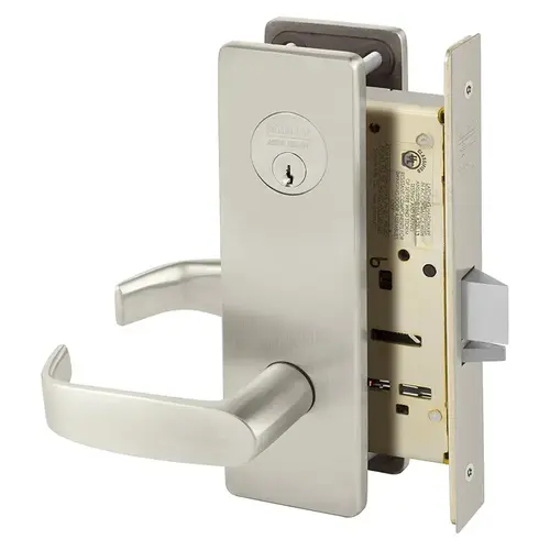 Asylum or Institutional Mortise Lock, LS Escutcheon, L Lever, Satin Nickel,