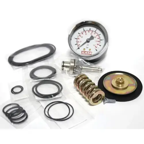 Repair kit comes with the countersunk screw, spring, diaphragm, 2 pressure gauges, pressure valve and O-rings