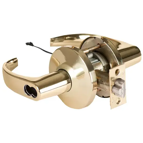 Fail Secure, 24VDC, Cylindrical Lever Lock, 14L Design, Bright Brass