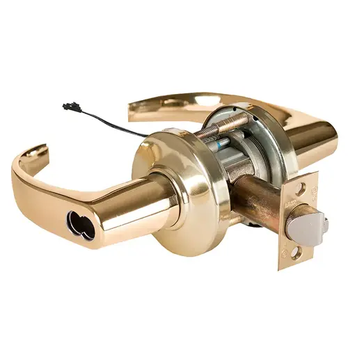 Fail Safe, 24VDC, Cylindrical Lever Lock, 14C Design, Request to Exit, Bright Brass