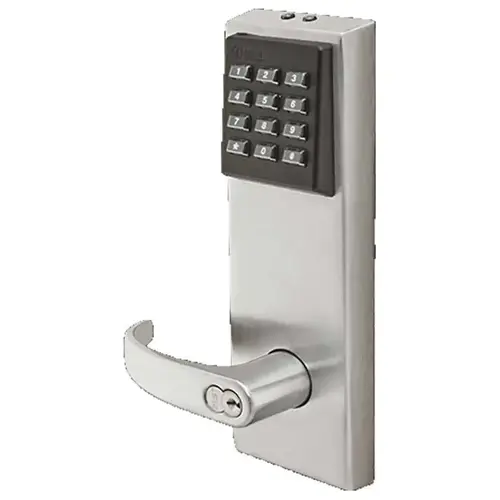 9KZ Keypad EZ Cylindrical Lock, 2-3/4" Backset, 7-Pin Housing; Accepts all BEST Cores, DV with Key Function, Curved with Return, Keypad Trim, ANSI Strike, Satin Chrome