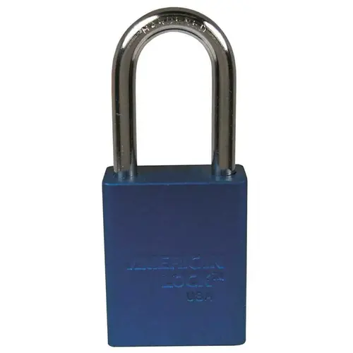 The American Lock No. A1106BLU Aluminum Padlock features a 1-1/2 in. (38 mm) W blue anodized aluminum body with a 1-1/2 in. (38 mm) tall, 1/4 in. (6 mm) Dia chrome plated, boron alloy shackle for superior cut resistance. The anodized finish makes padlock suitable for lockout in food processing facilities and corrosion resistant finish ideal for tough environments. Limited Lifetime Warranty.