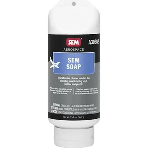 Aerospace SEM soap is a mild abrasive cleaner used as the first step in refinishing flexible substrates.