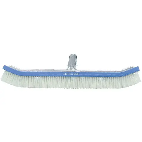A&B Curved Wall Brush 18" (AB905) is designed for residential pools, featuring an 18" curved ABS head with white nylon bristles on a reinforced aluminum back. This durable brush scrubs plaster and concrete walls efficiently, attaching to standard poles for thorough algae and stain removal with a professional-grade, lightweight design.Compatible with standard telescopic poles (1-1/8" OD), per A&B specs.Dimensions: 18" W x 5" H head; ABS plastic with aluminum backing; nylon bristles.Installation snaps onto pole; tools: none; safe for plaster, not vinyl liners.Clients enjoy spotless walls and a reliable, pro-quality cleaning tool.