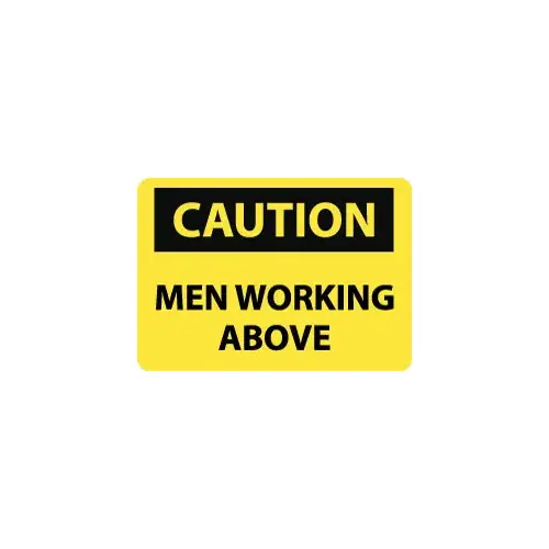 Sign: Rectangle, "Caution - Men Working Above" Plastic, Wall Mount, 10" High