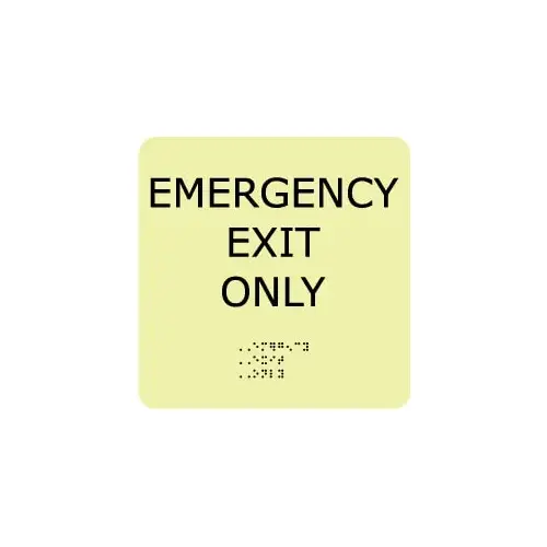 Emergency Exit Only, Plastic Exit Sign 8" Wide x 8" High, English/Braille, Glow-in-the-Dark