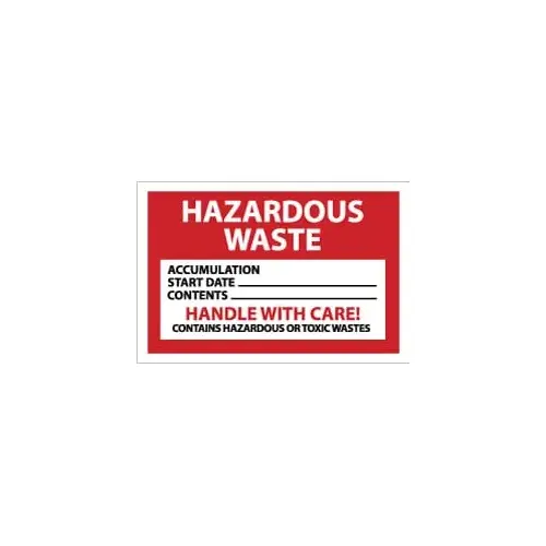 Hazardous Waste - Accumulation Start Date___ - Contents___ - Handle with Care! - Contains Hazardous or Toxic Wastes