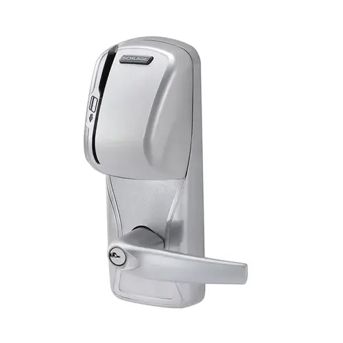 AD-300 Networked Hardwired Electronic Lock, Mortis, Classroom Function, Multi-technology (125kHz and 13.56 MHz), Athens Style Lever, With Schlage Standard Cylinder, Satin Chrome