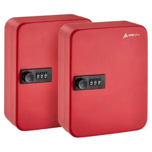 Adir Office 48-Key Steel Secure Key Cabinet W/Combination Lock Red. Combination Lock With Over 1,000 Re-Settable Combinations. Includes Screw And Wall Anchors For Easy Mounting And Setup. Interior Depth For Larger Key Rings. Holds 48 Keys. Red. Dimensions 10 In. H X 7.1 In. W X 3 In. D. 1-Year Manufacturer Warranty. Scratch-Resistant. 2 Pack. Mfg #ADI682-48-RED-2pk