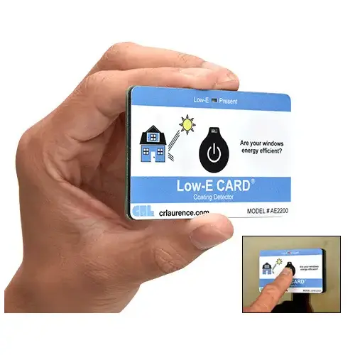 CRL Low-E CARD is a disposable reader/detector that will allow 1,000 tests to be conducted. It will confirm if there is a Low-e coating present on the piece of glass you place it against. The AE2200 tests both sides of the piece of glass from one side. It will not differentiate which side has the coating but it will confirm if a Low-e coating is present. No metal contacts to scratch the glass surface. After 1,000 tests, simply dispose of the card. For custom orders, with minimums (100 each), the Card can be printed with your company logo and sales message. Now you can offer your own branded card for use in the factory or give to customers. Please Note: For each time the button on the Card is pressed = 1 Test. Minimum order is one each.