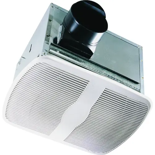 At the highest point the grill projects only 1/2 in down from the ceiling. The electronically balanced centrifugal blower wheel assures maximum ventilation at the minimum sound. Easily installed using the adjustable hanging brackets for 16 in centers. Motors are suitable for continuous operation. 4 in plastic duct collar with back draft damper. UL listed for installation over a tub or shower on a GFCI circuit. HVI2100 Certified.