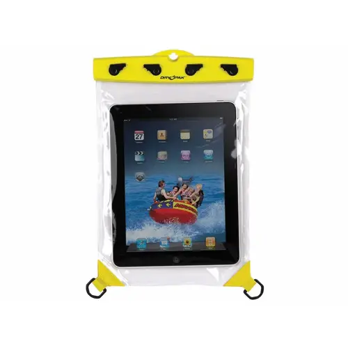 Airhead Sports Group(R), DryPak, Multi-Purpose Case ; Color: Clear, Design: 2 D-Rings sewn into corners & High Visibility Yellow Sealing Clip, Material: Heavy-Gauge Vinyl, Dimensions: 9" x 12", Maximum Circumference: 17", Recommended For: Jet Skiing, Wakeboarding, Water Sports, Camping, etc.