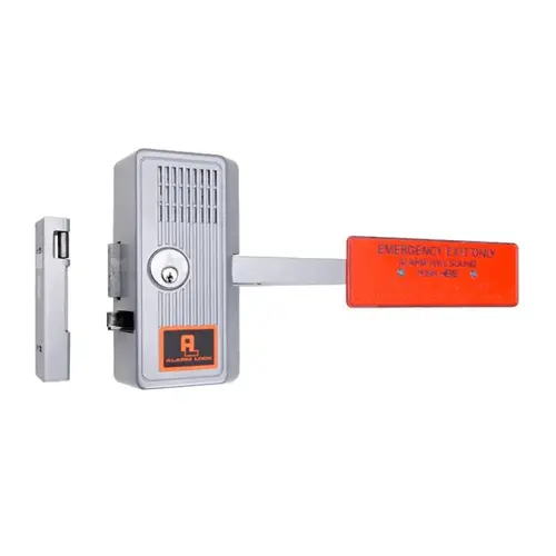 Suitable for Outdoor Use; Dual Piezo Siren; 1" Throw Lockbolt; Die Cast Metal Cover; Extruded Aluminum Channel and Push Bar; For Single or Double Doors