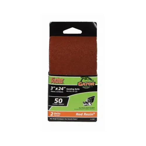 GATOR 3157 Sanding Belt, 3 in W, 24 in L, 50 Grit, Coarse, Aluminum Oxide Abrasive Pair
