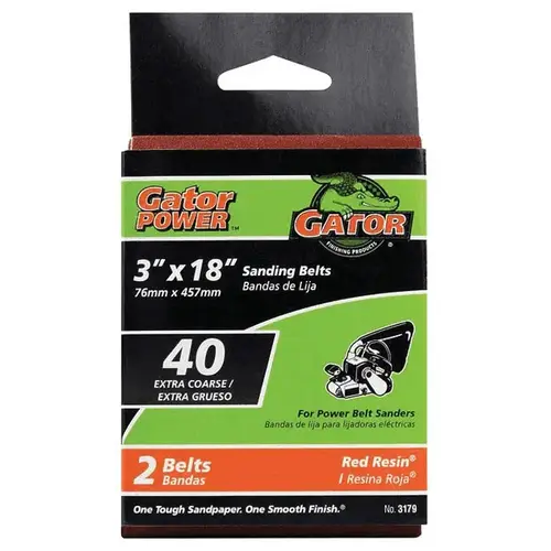 Gator Aluminum oxide sanding belts are designed to fit the most popular portable belt sanders offered today. These industrial-quality belts have long set the standard for quality and value. From the durable red resin bonding system, it resists heat build-up and humidity for longer life to the bi-directional flush joint that runs smoothly in both directions. Gator sanding belts are your first choice for your next project calls for using your portable belt sander.