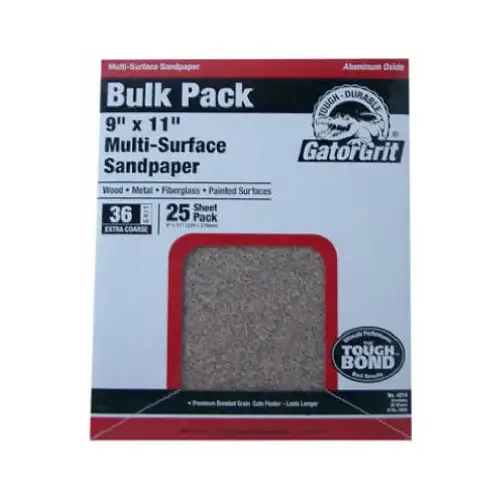Gator Grit, 25 Count, 9" x 11", Medium 80 Grit, General Purpose Sandpaper, Bulk Sheets, Aluminum Oxide, D Weight Paper.